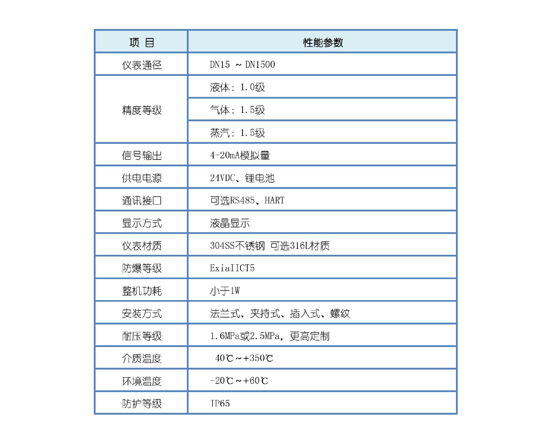 3、适用介质范围广:能准确测量各种温度下的气体、液体、蒸汽流量,可测二相流
